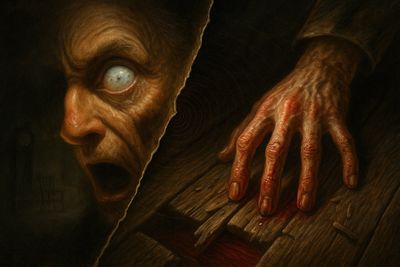I smiled — for what had I to fear? I welcomed the gentlemen. The shriek, I said, was my own in a dream. The old man, I mentioned, was absent in the country. I took my visitors all over the house. I told them to search — search well. I led them, at length, to his chamber. I showed them his treasures, secure and undisturbed. In the enthusiasm of my confidence I brought chairs into the room and asked them to rest here from their hard work while I myself, in the wild boldness of my perfect triumph, placed my own seat upon the very spot beneath which rested the corpse of the victim.